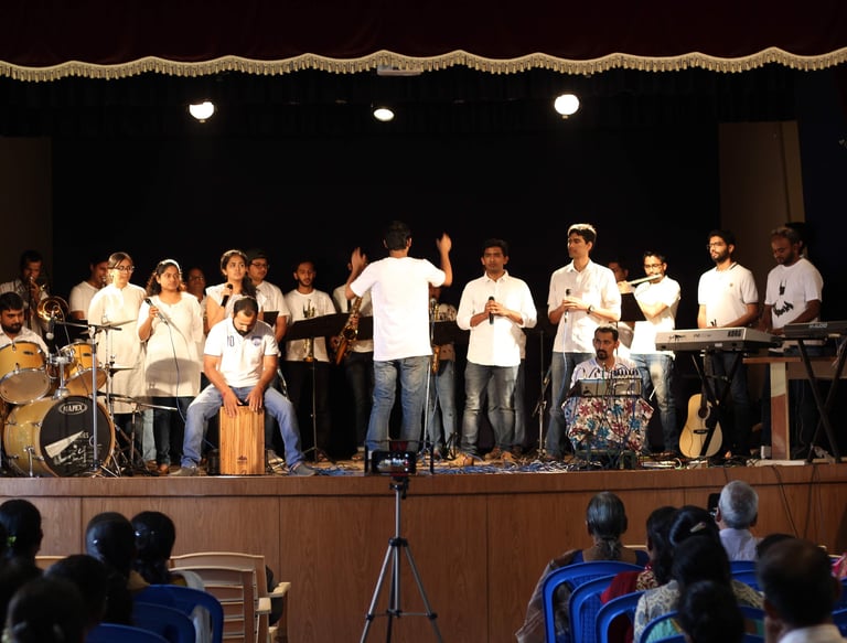 Rhythmic Energy is a Fusion Brass Band. Typically, a concert by Rhythmic Energy has an ensemble of 20-30+ musicians with a mix of Western Brass Instruments, Percussion, Keyboards, Guitars, Violins, Indian Instruments and Vocalists. Our strength lies in our diversity and unique delivery of music. The band strives to bring in the best talent in various fields.